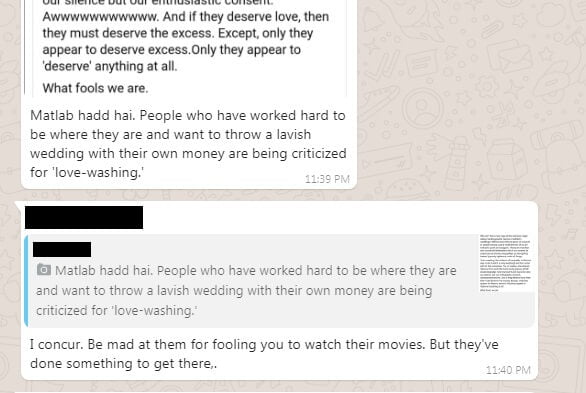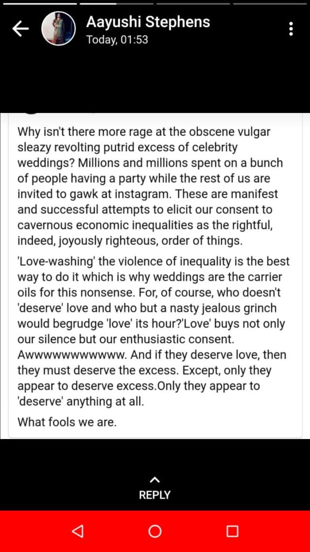 However, it does seem that these extravagant weddings did rub someone the wrong way, when this screenshot was shared on a WhatsApp group.
