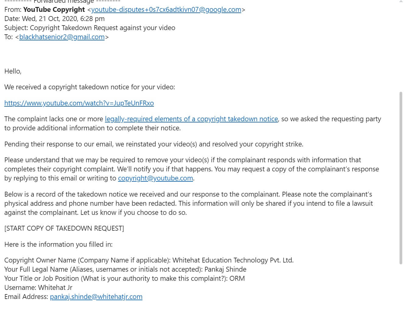 Content Critical Of ‘WhiteHat Jr’s Coding From Age 6 Claim’ Wiped Out?