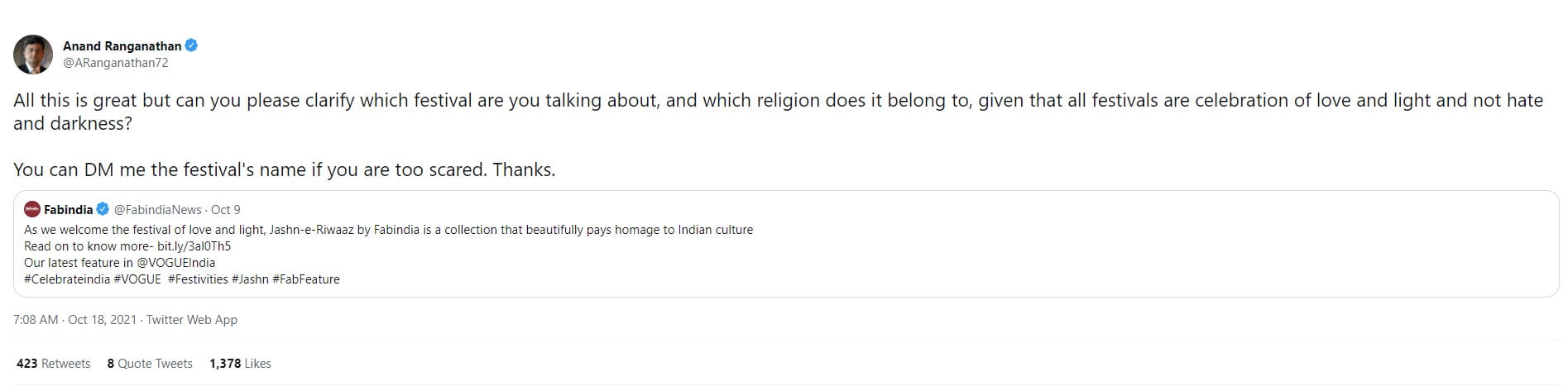 Fabindia Accused Of De-Hinduising Diwali; Calls Collection ‘Jashn-e-Riwaaz’ In New Ad