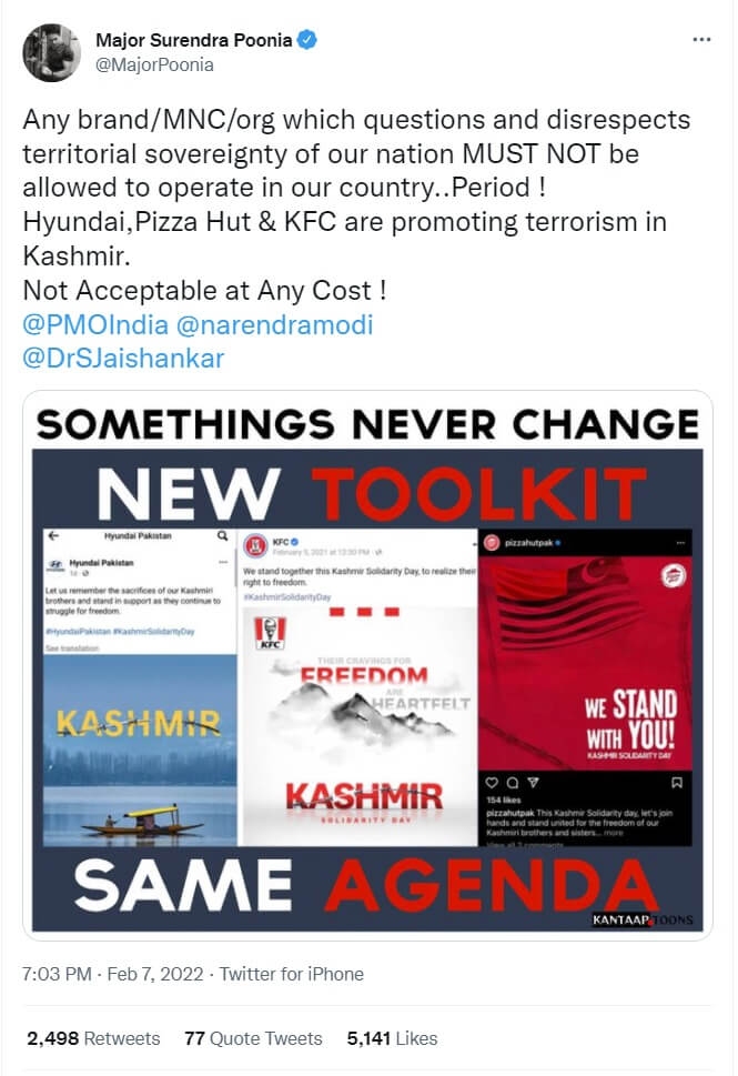Hyundai, KFC, Pizza Hut’s Pakistan Verified Social Media Accounts Make Indiaphobic Posts, Show Support To Kashmiri Freedom