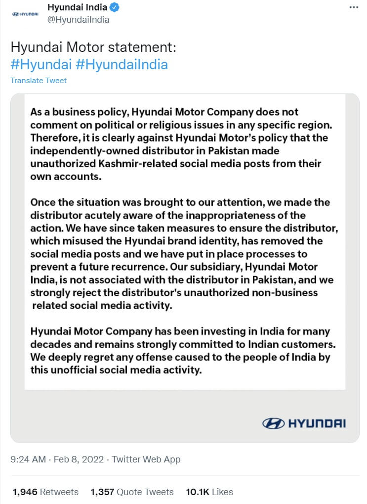Hyundai, KFC, Pizza Hut’s Pakistan Verified Social Media Accounts Make Indiaphobic Posts, Show Support To Kashmiri Freedom