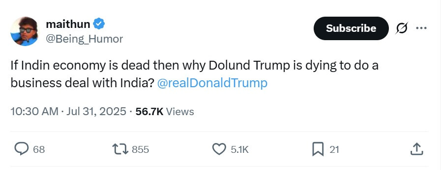 Indian Netizens Troll Trump After ‘Dead Economy’ Remark And Tariffs