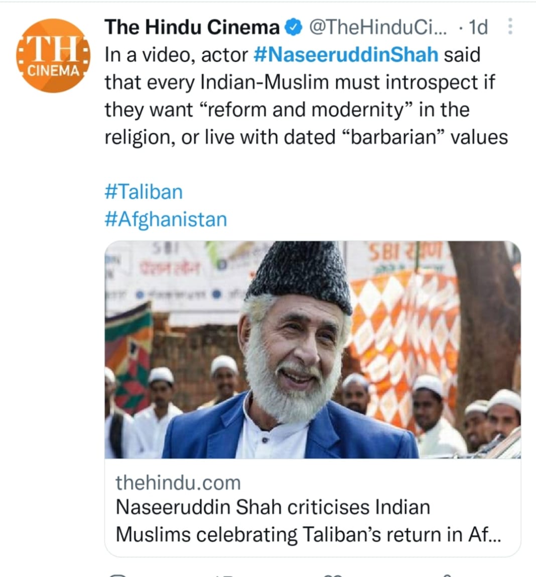 Naseeruddin Shah Has A Message For Indian Muslims Who Are Celebrating The Victory Of The Taliban In Afghanistan