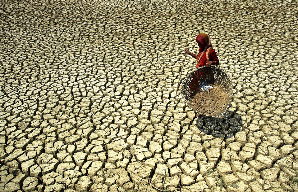 A woman walks over parched land at Basudevpur village in Bhadrak district, about 130 kilometers (81 miles) north-east from Bhubaneswar, India, Friday, March 6, 2009. (AP Photo/Biswaranjan Rout)
