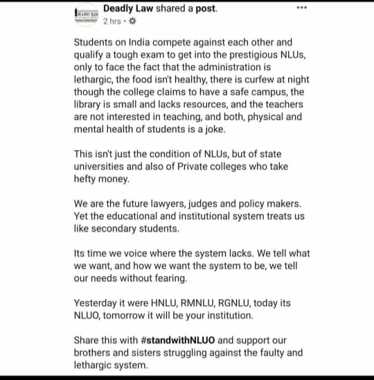Student Body Association Of NLU Odisha Takes The Indian Law Colleges By Storm With Their Indefinite Strike Against The Admin On Various Issues