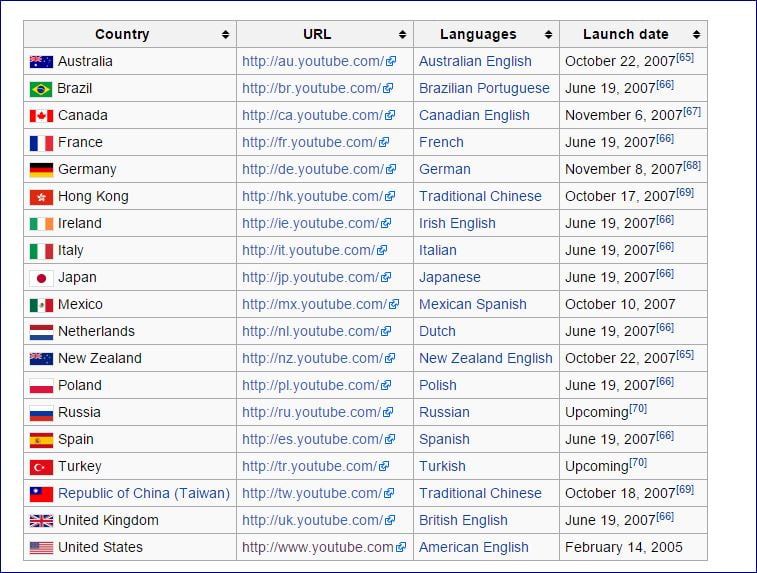 Countries and YouTube