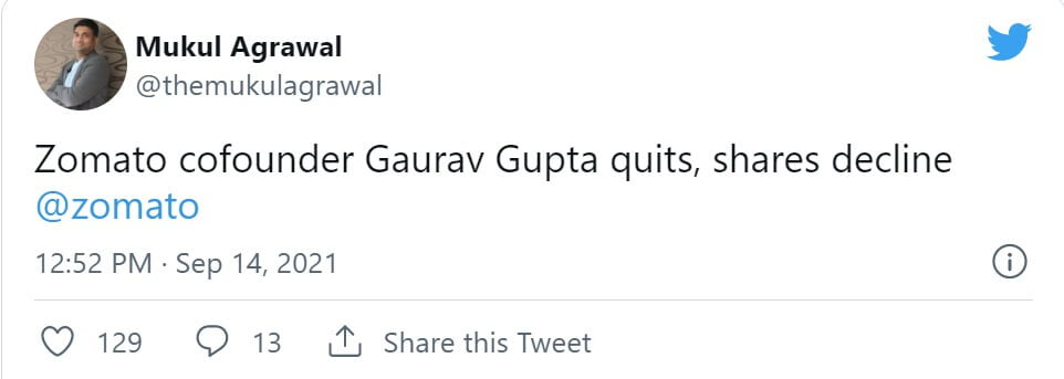 Zomato Co-Founder Quits After 6 Years: Market Speculates The Reasons